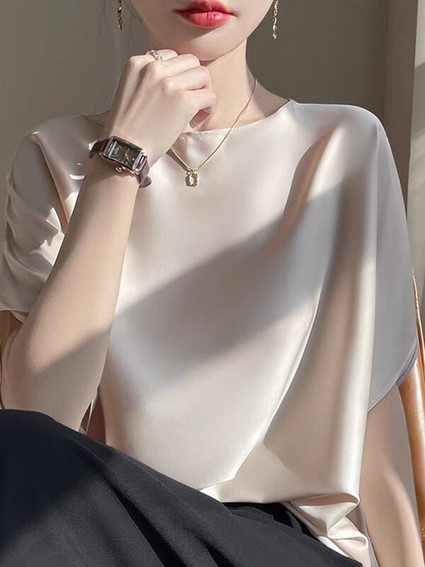ボートネックのブラウスは、シンプルながらも洗練されたデザインが魅力。
