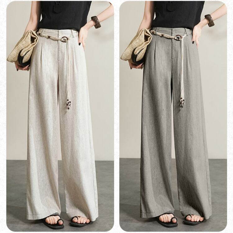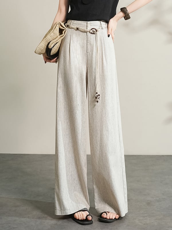 ハイウエストリネンワイドパンツウエストリボン付き 00010