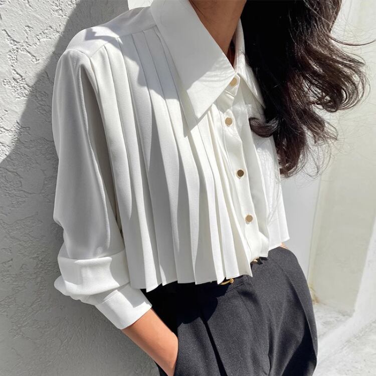 プリーツデザインが目を惹く、スリーブシャツ。上品で美しいプリーツが、着こなしに洗練された雰囲気をプラスします。ボタンを留めてきちんと着こなしたり、羽織としてラフに着こなしたりと、様々なスタイルを楽しめます。オフィスシーンからデイリーユースまで、幅広いシーンで活躍する1枚です。